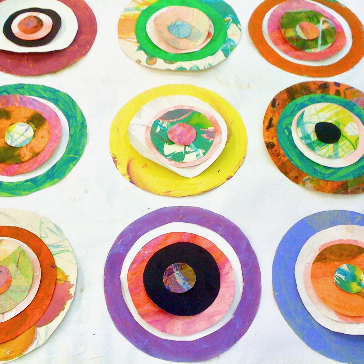 As with all other work in Sara’s Begun with Others collection, the Circles of Light series began as unwanted or discarded material collaboratively-created with workshop participants. Participants over the years have included school refusers, prisoners, adults and children with mental health challenges and carers, refugees, English language learners, family groups, art students, dancers, primary and secondary school children, teacher trainers, community builders.