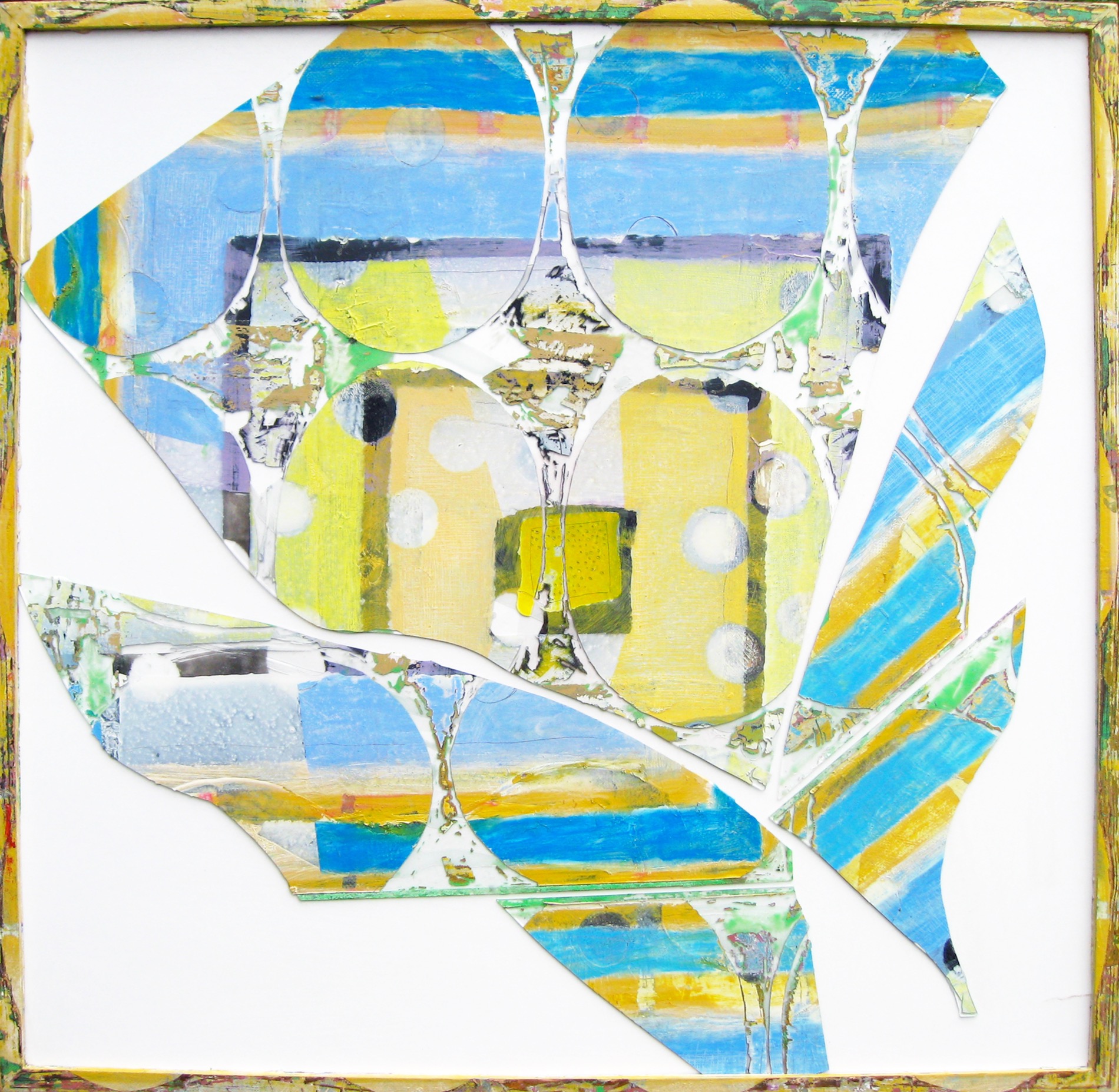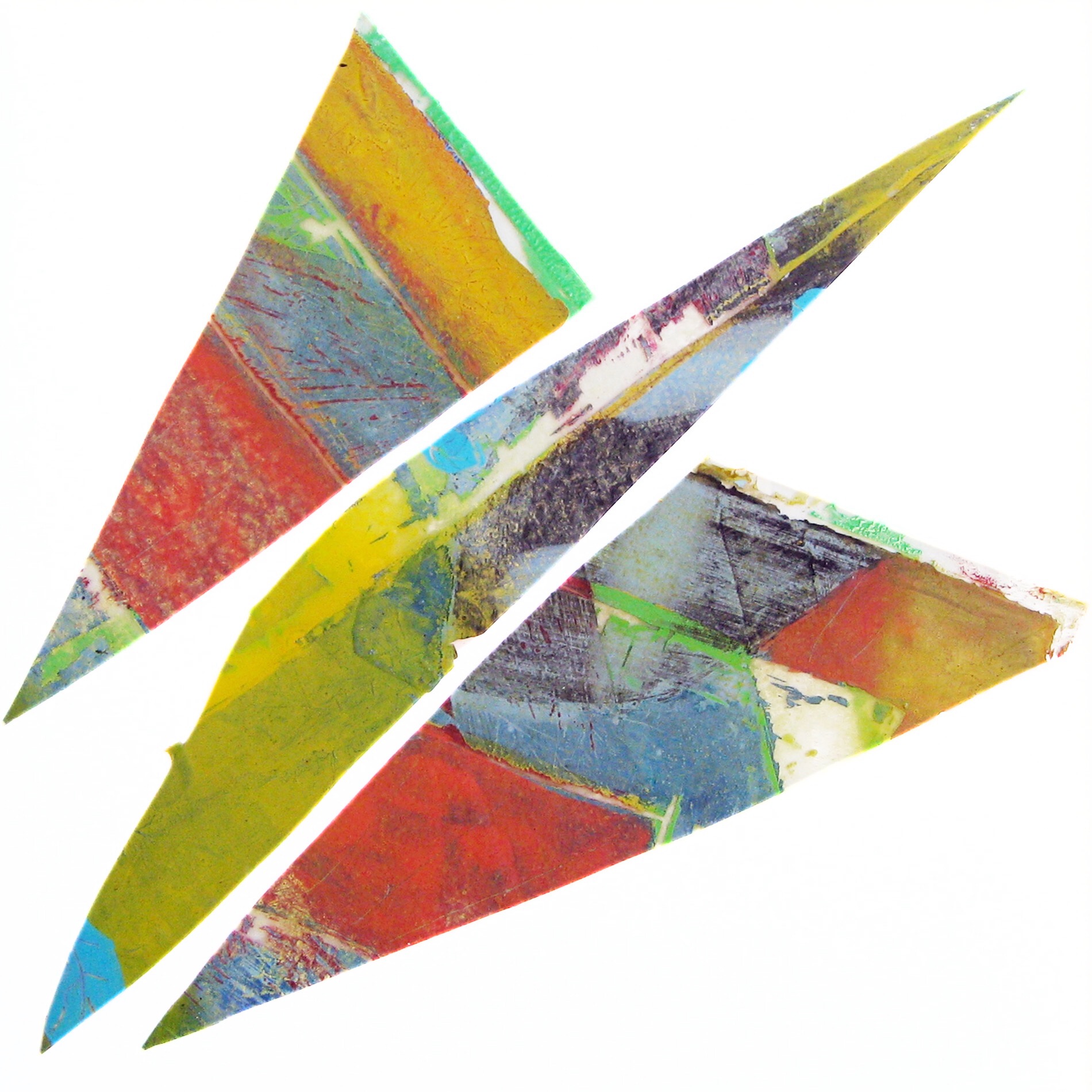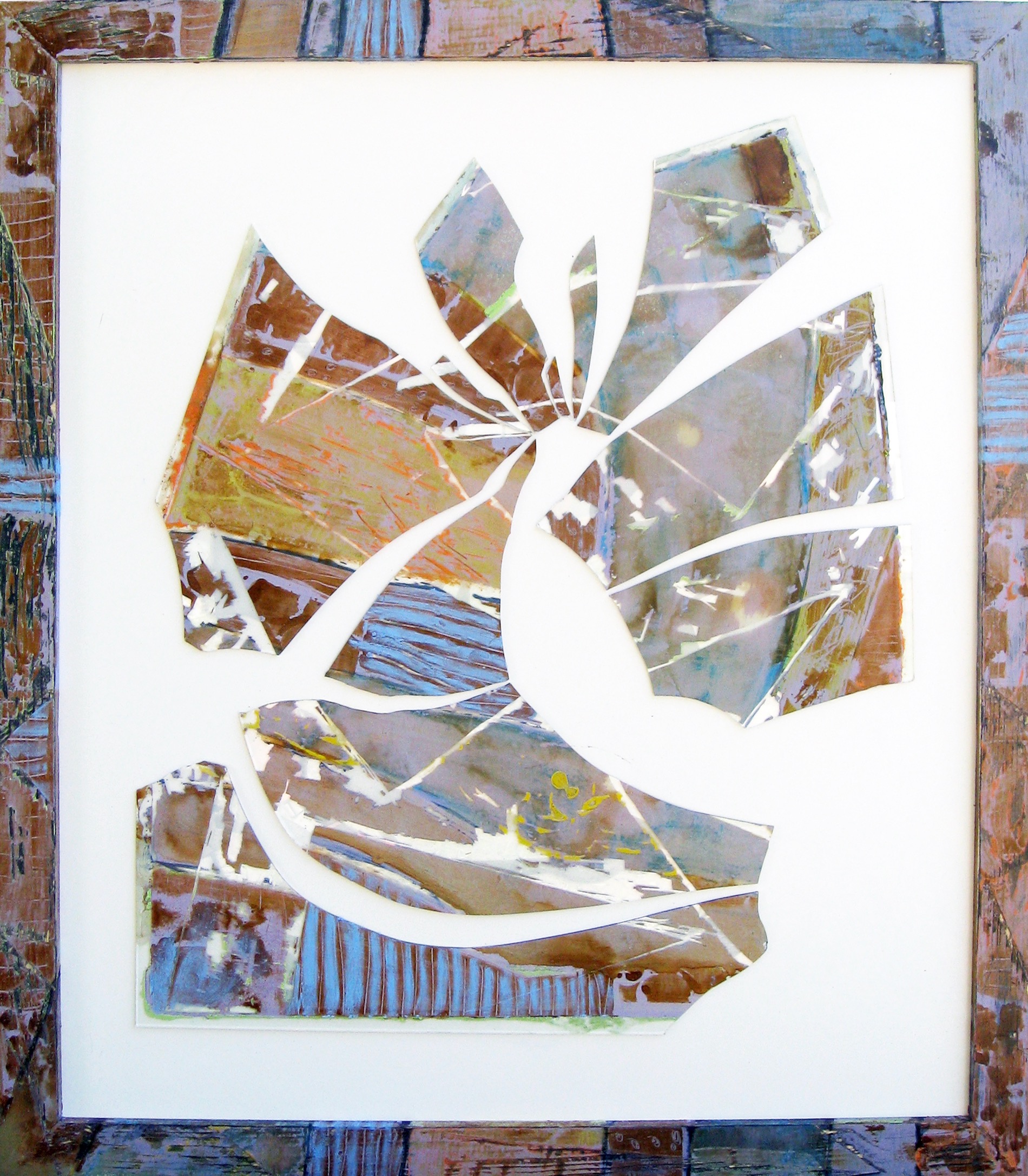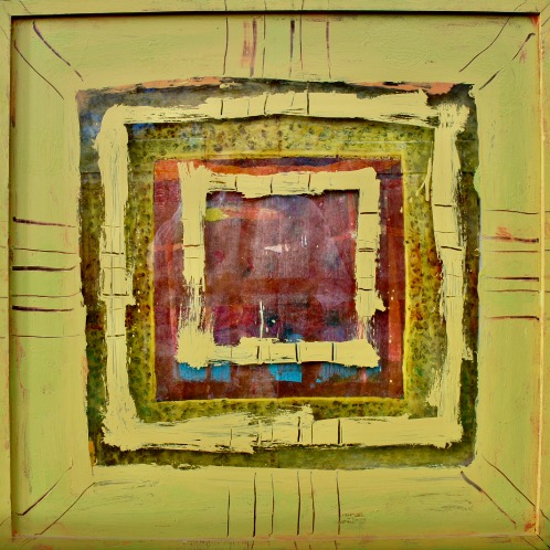 All pieces are mixed media on glass, wooden frame and board