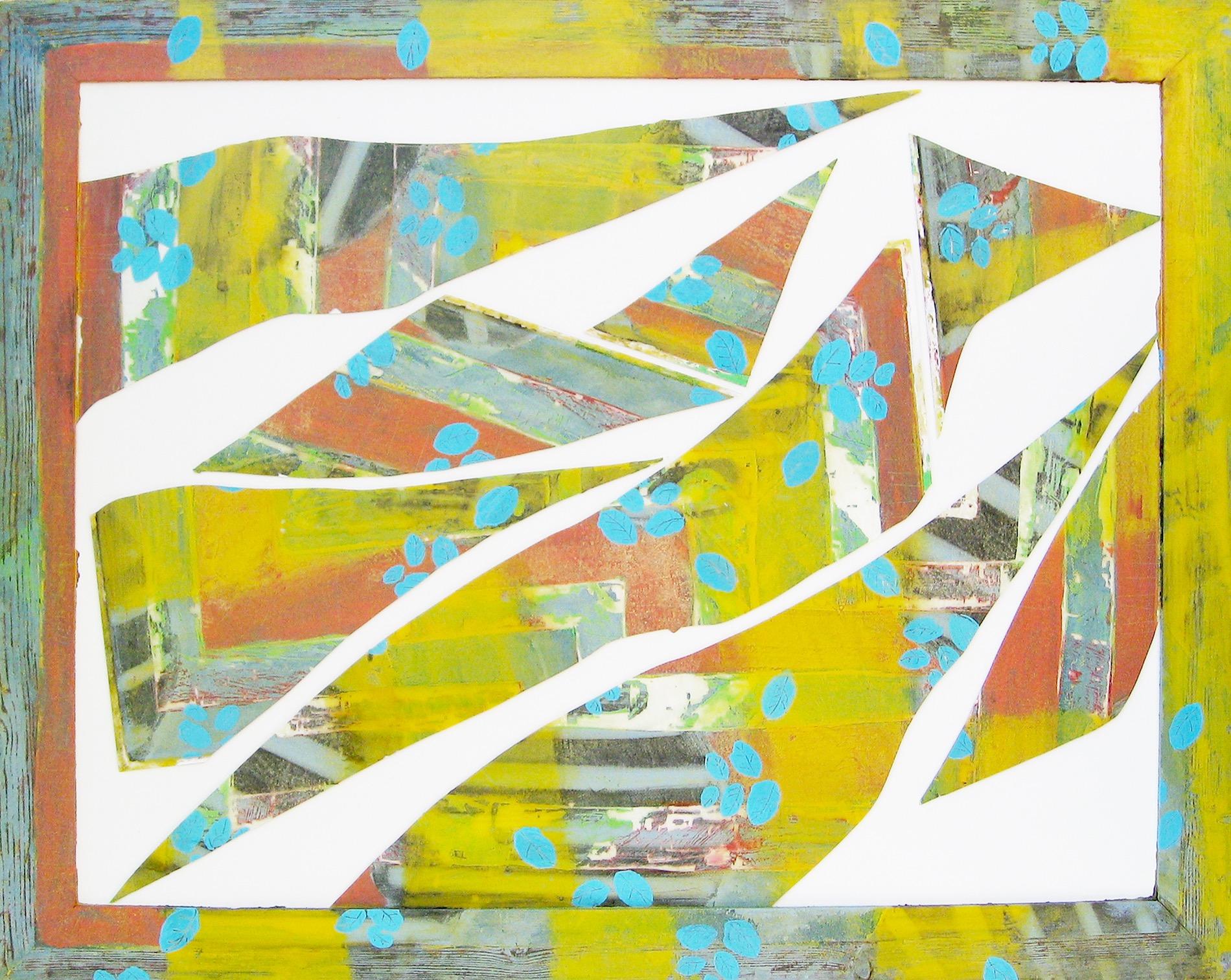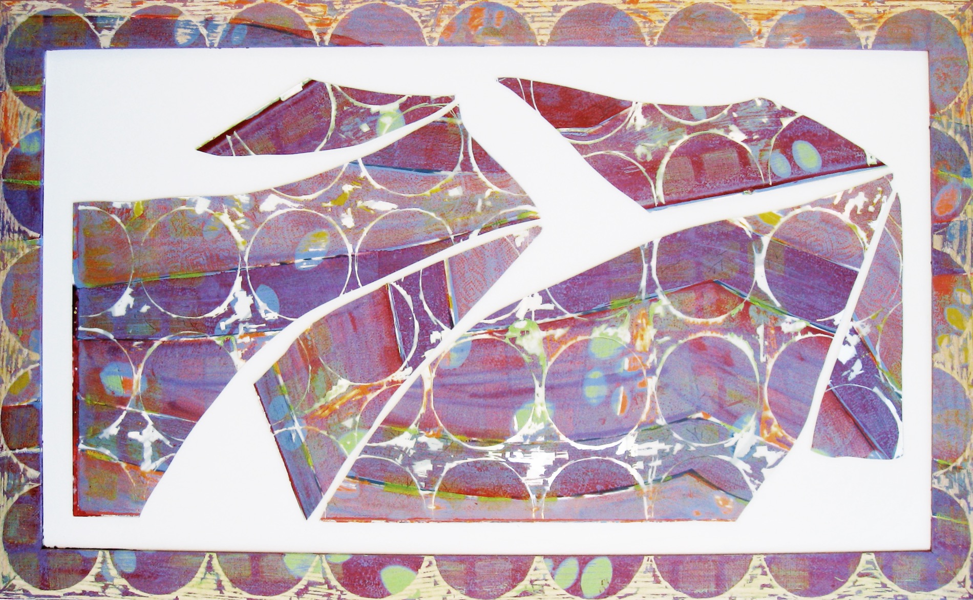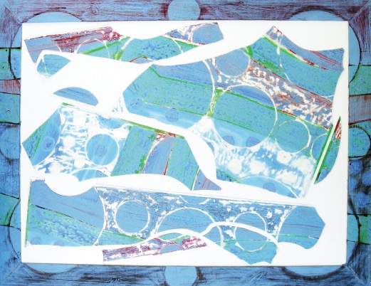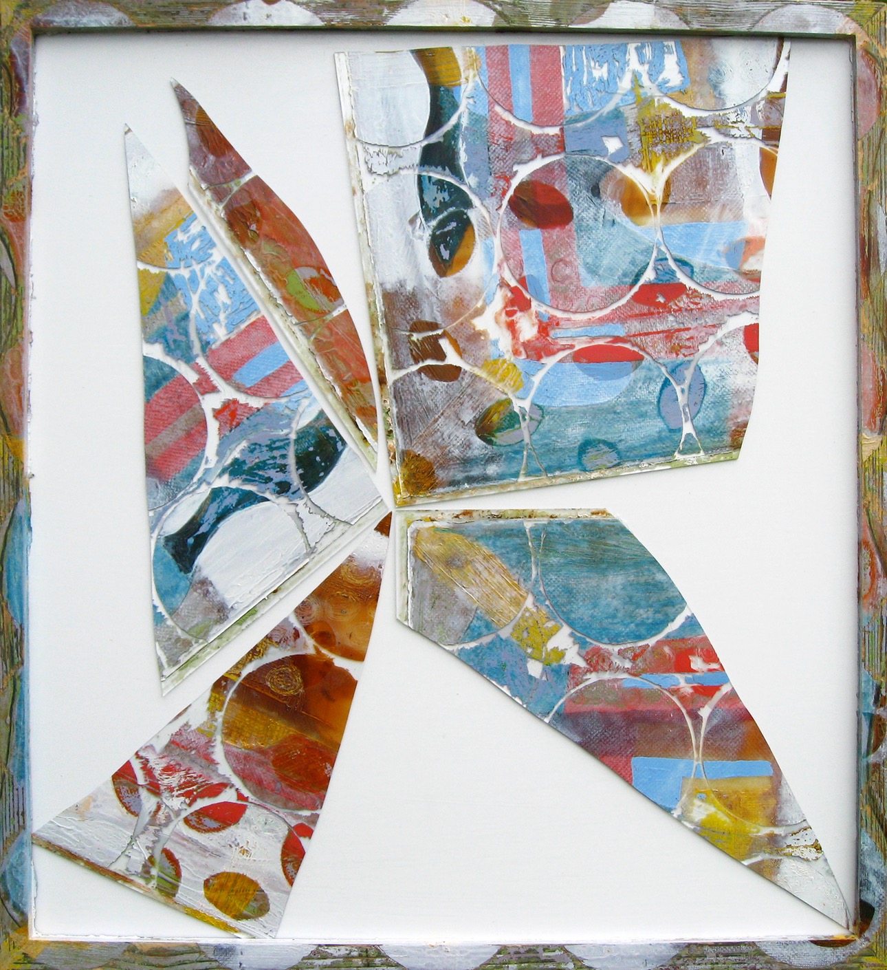 All pieces are mixed media on glass, wooden frame and board